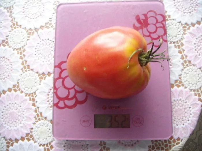 Масса плодов существенно варьируется. На первых кистях часто формируются настоящие гиганты, весом до 600 граммов и более. Плоды на верхних ярусах, как правило, мельче. Для получения максимально крупных томатов рекомендуется нормировать количество завязей в кисти, оставляя 3-4 наиболее развитых.