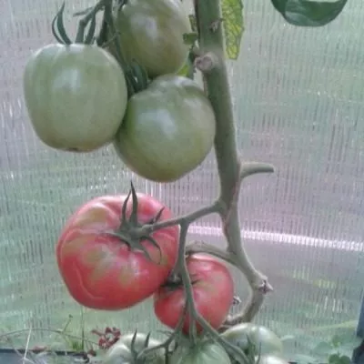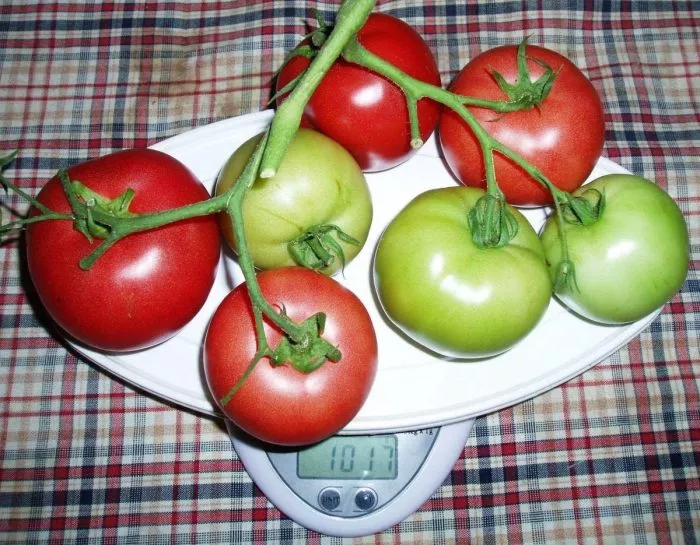 Плодоножка имеет сочленение (утолщенное кольцо в месте прикрепления к плоду), что облегчает аккуратный сбор урожая без повреждения самого томата. Внешний вид созревающих гроздей очень декоративен, особенно первые кисти, плоды на которых часто бывают рекордного размера.