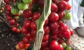 В период массового плодоношения зреющая гроздь выглядит очень эффектно, напоминая гирлянду из малиновых шаров. Такое обильное плодоношение на каждой кисти напрямую влияет на общую высокую урожайность сорта, заявленную в характеристиках.