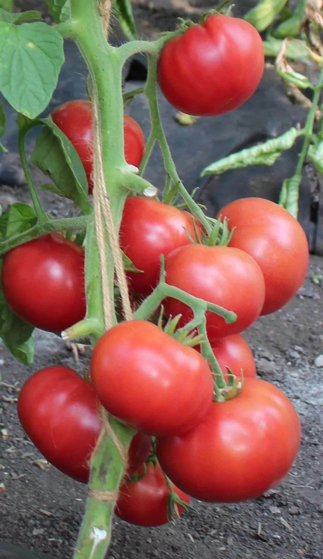 - По мере роста незамедлительно подвязывайте стебель к шпалере или крепкому колу мягкой лентой, не перетягивая его. Крупные плоды создают значительную нагрузку.