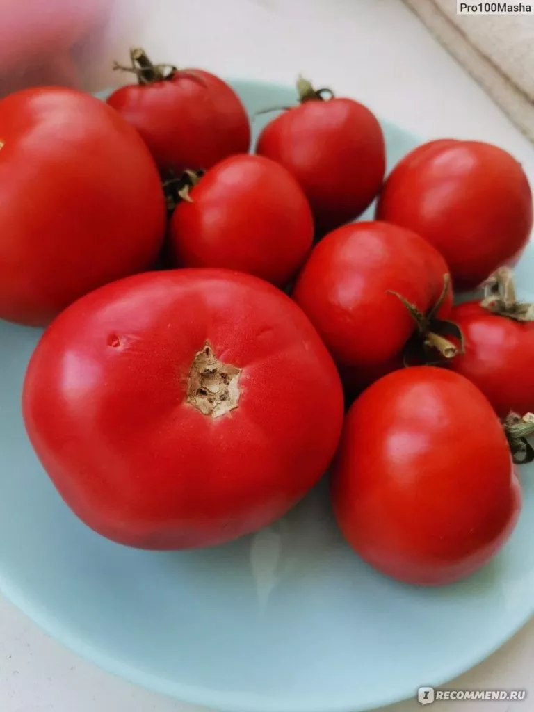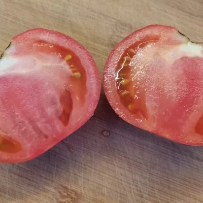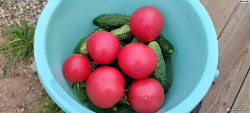 Плоды имеют классическую округлую форму со слабо выраженной ребристостью у плодоножки. В стадии полной зрелости они приобретают насыщенный розовый цвет, характерный для многих салатных сортов. Мякоть у таких томатов обычно менее плотная и более сочная по сравнению с красноплодными гибридами, предназначенными для консервации.