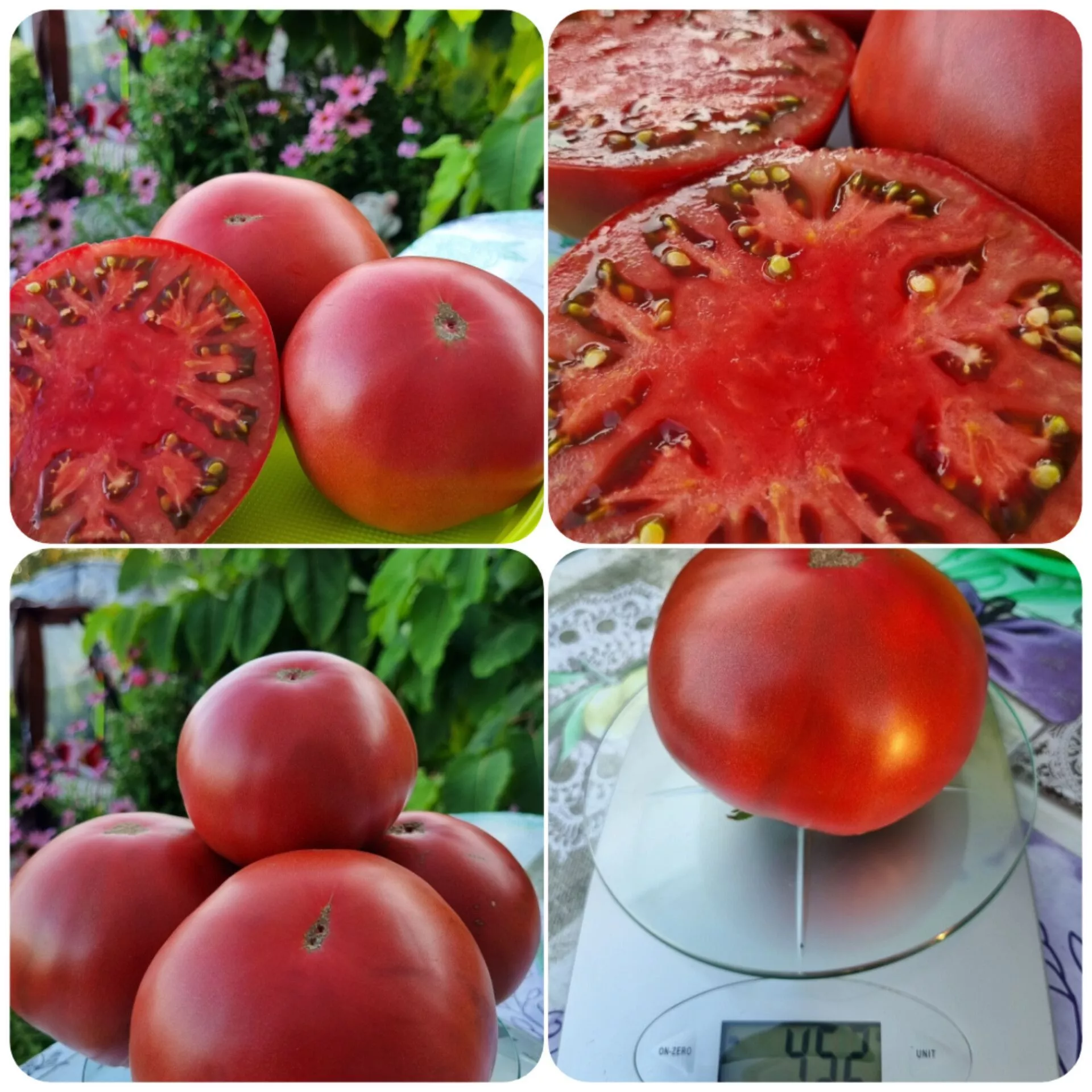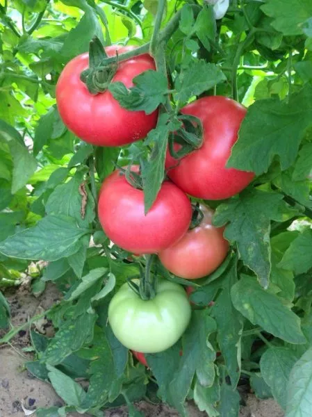Плоды завязываются кистями. Форма у них плоскоокруглая, что является одним из визуальных признаков сорта. Часто, особенно у самых крупных экземпляров первого сбора, наблюдается заметная ребристость в области плодоножки. По мере созревания томаты приобретают равномерный, глубокий малиновый окрас без зеленого пятна у основания.