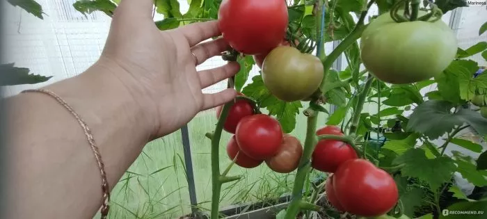Средняя масса плода, согласно характеристикам, составляет 320 граммов. На практике нижние кисти часто формируют более крупные помидоры, которые могут превышать заявленный вес, в то время как плоды на верхних ярусах обычно мельче. Это характерная особенность многих индетерминантных сортов с крупными плодами.
