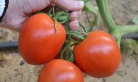 Плоды собраны в компактные кисти, в каждой из которых может формироваться от 5 до 7 завязей. Созревание томатов в кисти происходит дружно, что удобно для сбора урожая.
