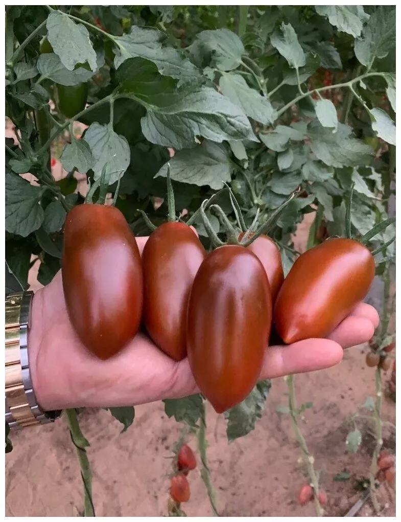 Главная отличительная черта плодов этого гибрида — насыщенный шоколадно-коричневый окрас в биологической спелости. Такой необычный цвет формируется благодаря высокому содержанию антоцианов. Эти природные пигменты являются сильными антиоксидантами, что добавляет плодам не только эстетическую, но и пищевую ценность.
