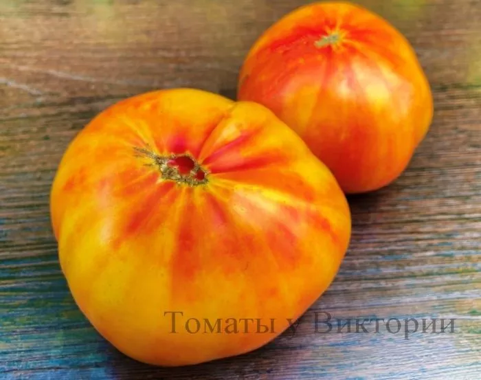 Цвет мякоти соответствует внешней окраске — насыщенный, оранжево-розовый, без зеленого или белого пятна у плодоножки при полном созревании. Плоды первой и второй кисти часто имеют более выровненную и идеальную форму по сравнению с последующими.