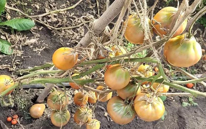 Подвязка требуется как стеблю, так и тяжелым кистям. Используйте высокие и прочные опоры: шпалеры, колья не менее двух метров высотой или вертикальные шпагаты. Кисти с наливающимися плодами подвязывают отдельно, чтобы избежать обламывания под их весом.