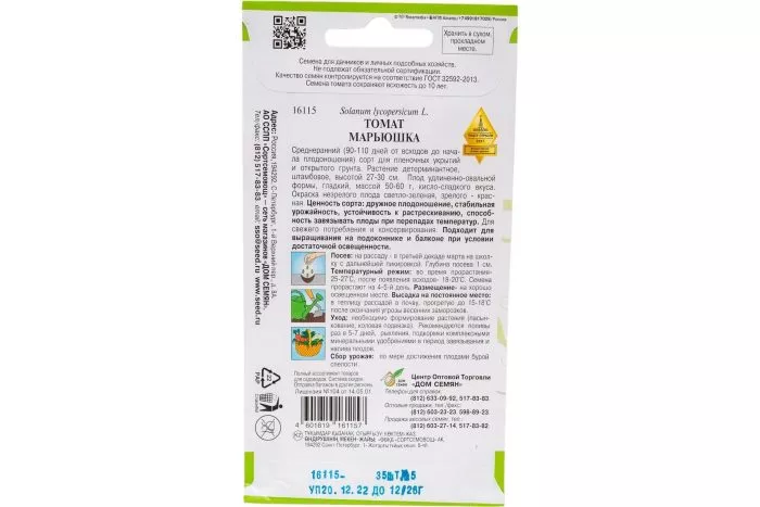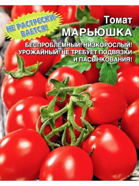 Томат Марьюшка представляет собой детерминантный гибрид первого поколения (F1). Это означает, что растения, выращенные из его семян, будут обладать предсказуемым набором характеристик, но собирать семена с собственного урожая для посева на следующий год не имеет смысла — они не сохранят родительских качеств.