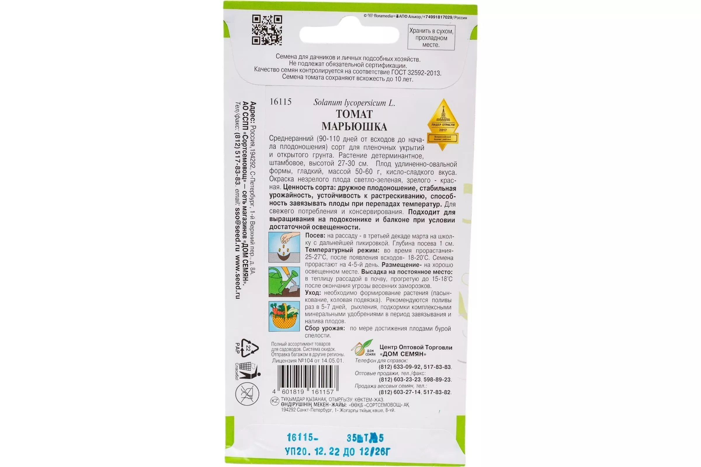 Посев на рассаду проводят за 55-60 дней до планируемой высадки на постоянное место. Для рекомендованных регионов (Центральный, ЦЧО, Средневолжский) это обычно приходится на вторую половину марта. Семена гибридов первого поколения (F1), как правило, уже прошли обработку у производителя, поэтому их сеют сухими.