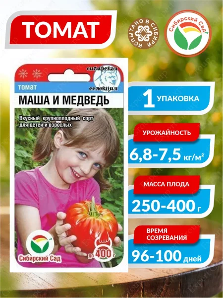 Сорт томатов «Маша и медведь» — отличный выбор для сибирских условий. Это ранние индетерминантные помидоры, которые хорошо плодоносят как в теплице, так и в открытом грунте. Крупные, сладкие плоды массой до 400 граммов и стабильная урожайность делают его желанным гостем на любом огороде. Давайте разберемся в особенностях выращивания этого сорта.