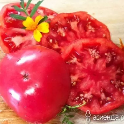Мякоть полностью созревшего томата отличается высокой плотностью и мясистостью, она сахаристая на изломе, с небольшим количеством семян и семенных камер. Такая структура обусловливает не только отличный вкус, но и хорошую транспортабельность плодов. Окраска – равномерная, насыщенно-красная, без зеленого пятна у плодоножки.