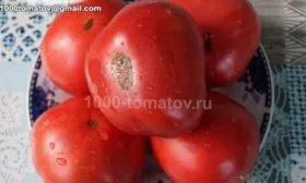 Плоды имеют плоскоокруглую форму с выраженной ребристостью у плодоножки, которая становится заметнее по мере увеличения размера томата. В состоянии технической спелости окраска темно-розовая, при полном созревании на солнце может приобретать насыщенный малиновый оттенок.