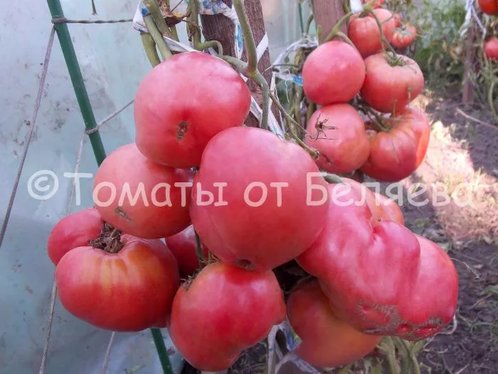 Окраска в полной зрелости – равномерный, насыщенный малиновый цвет без зеленого пятна у плодоножки. Такой оттенок часто свидетельствует о высоком содержании ликопина – ценного антиоксиданта. Вкус оценивается как хороший, с гармоничным балансом сладости и кислотности, характерным для современных сортов малиновой группы. Плоды собраны в простые или промежуточные кисти, что облегчает их сбор.