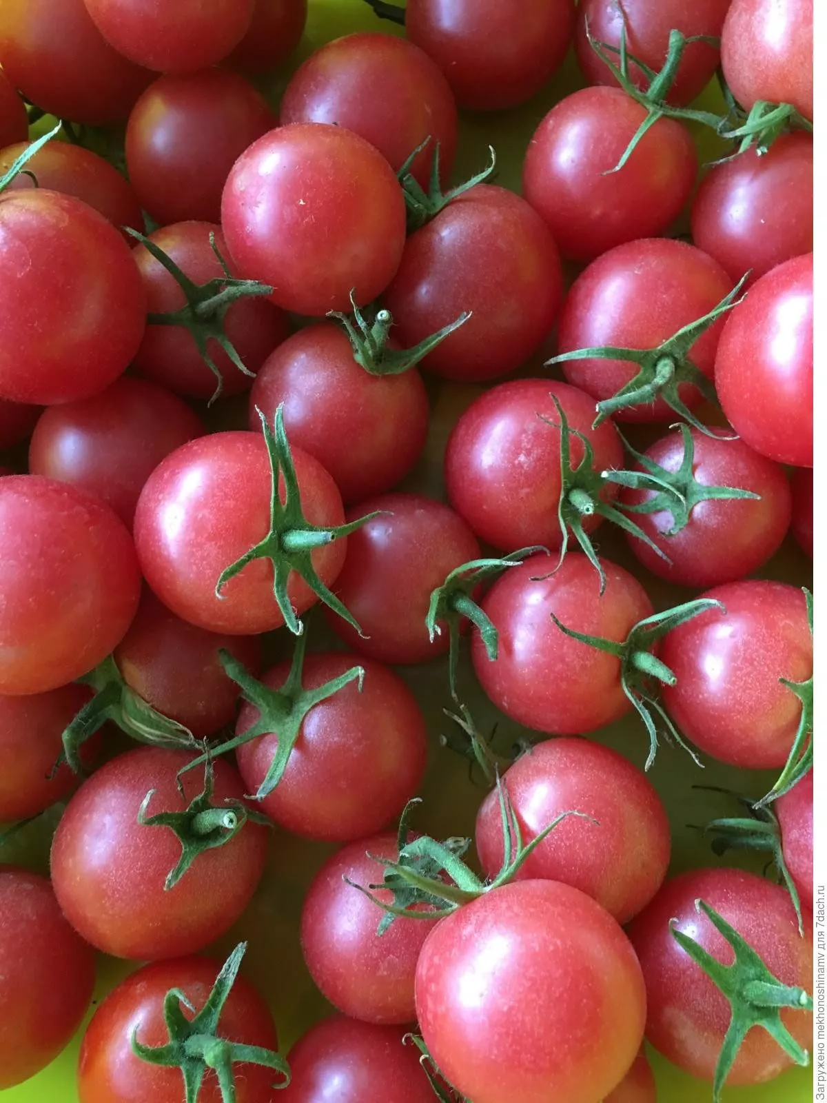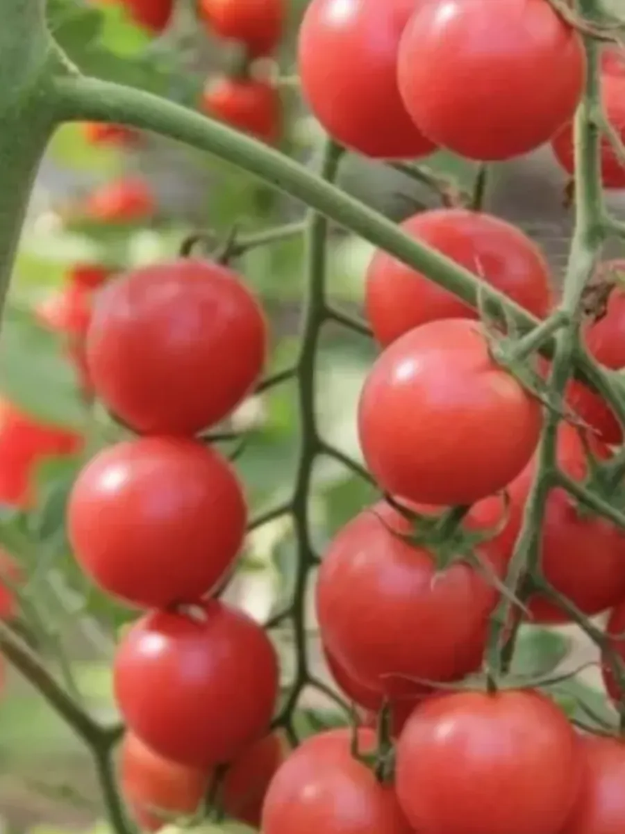 Снимать округлые плоды массой около 25 граммов рекомендуется в стадии полной биологической спелости, когда они равномерно окрашиваются в насыщенный малиновый цвет. Именно в этот момент вкус раскрывается полностью. С практической точки зрения удобнее срезать или аккуратно отламывать целые кисти, а не отдельные помидорки. Так они меньше травмируются и дольше сохраняют свежесть.