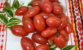 Помидоры этого сорта обладают классической сливовидной или овальной формой, которая высоко ценится для цельноплодного консервирования. Их контуры ровные и гладкие, часто с характерным небольшим вытянутым «носиком» у основания, что является сортовым признаком и добавляет плодам узнаваемости.