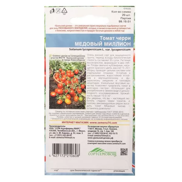 Важной агротехнической особенностью является то, что Медовый миллион — это сорт, а не гибрид F1. Это означает, что с него можно самостоятельно собирать семена для посева в следующем сезоне, и они сохранят основные родительские признаки. Данное качество особенно ценится огородниками, предпочитающими независимость от покупных семян и интересующимися селекционной работой на своем участке.