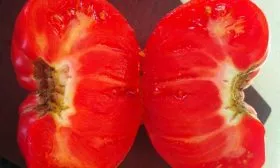 Мякоть отличается высокой плотностью и мясистостью, при разрезе сахаристая. Количество семенных камер небольшое, семян мало, что увеличивает долю полезной мякоти. Кожица тонкая, но достаточно плотная, чтобы предохранять плод от растрескивания при стабильном поливе. Однако ее прочности недостаточно для механизированной уборки или длительных перевозок.