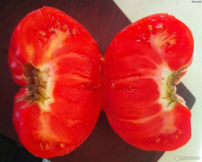 Мякоть отличается высокой плотностью и мясистостью, при разрезе сахаристая. Количество семенных камер небольшое, семян мало, что увеличивает долю полезной мякоти. Кожица тонкая, но достаточно плотная, чтобы предохранять плод от растрескивания при стабильном поливе. Однако ее прочности недостаточно для механизированной уборки или длительных перевозок.