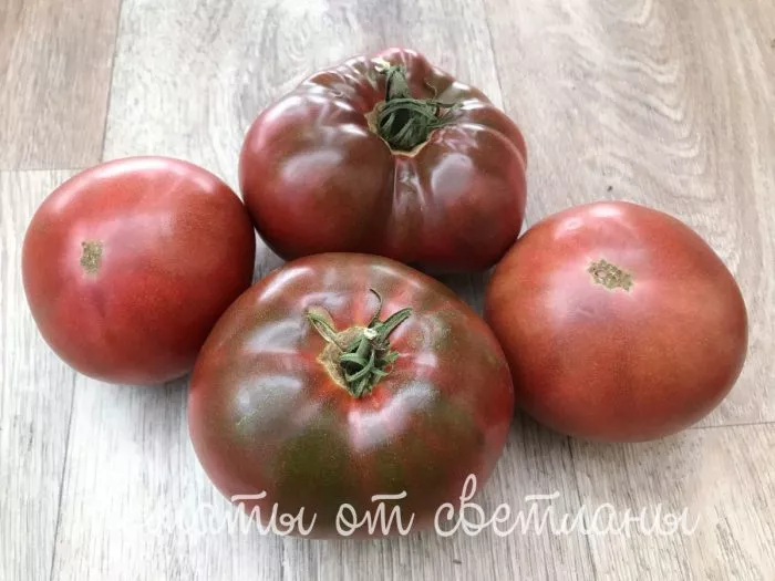 Главная отличительная черта сорта — экзотическая окраска зрелых плодов. Темно-коричнево-вишневый цвет, часто описываемый как шоколадный или бордово-коричневый, достигается благодаря комплексному содержанию пигментов: каротиноидов (ликопин, каротин) и антоцианов. Последние являются сильными антиоксидантами, что повышает питательную ценность урожая.