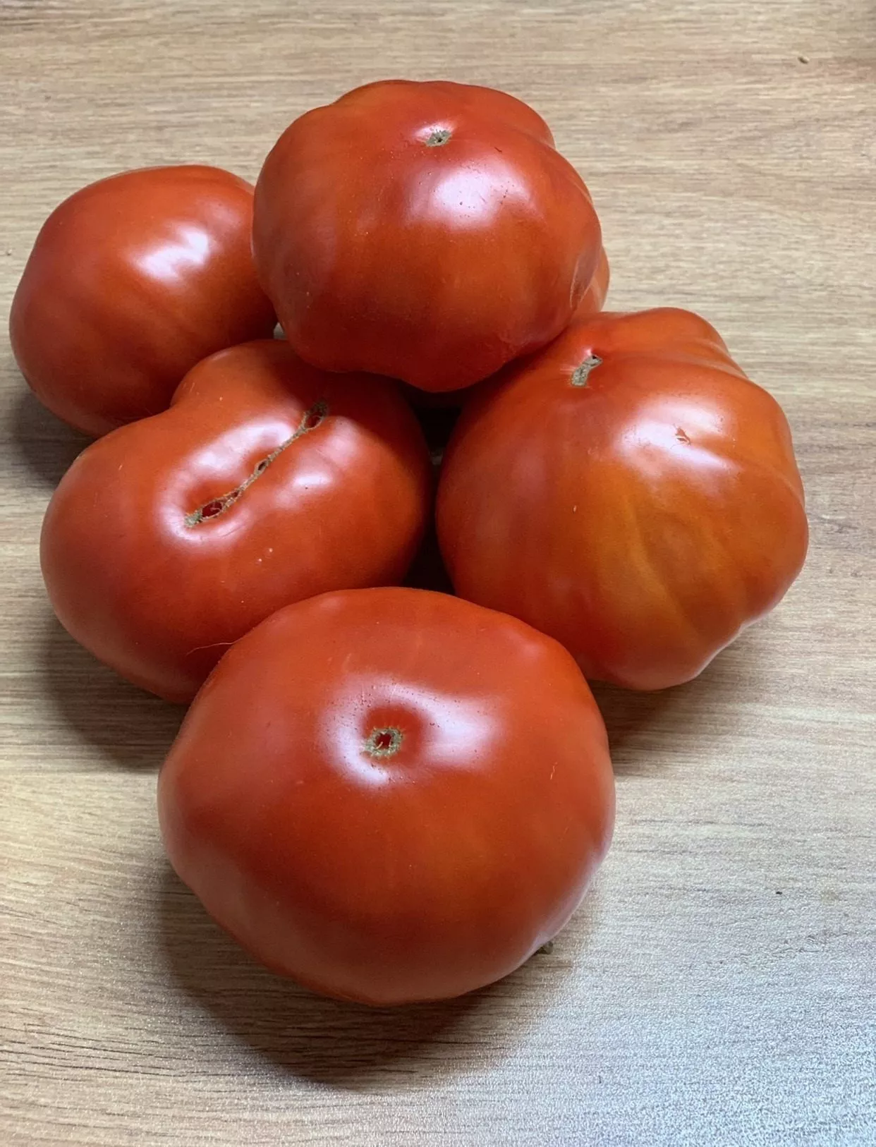 При достижении биологической спелости томаты приобретают насыщенный, равномерный красный окрас без зеленого или желтого пятна у основания. Это свидетельствует о полном созревании и накоплении сахаров. Мякоть исключительно плотная, сахаристая на изломе, с минимальным количеством семян и небольшими семенными камерами.