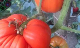 Гигантский размер. Средний вес в 450-600 граммов — это норма, а не рекорд. На нижних кистях регулярно завязываются плоды-тяжеловесы от 1000 до 2500 граммов. Для достижения такой массы необходимо нормирование: оставляют не более 2-3 завязей в кисти, а остальные цветы аккуратно удаляют.
