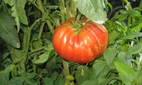 Форма плодов — классическая плоскоокруглая, часто с выраженной ребристостью, особенно в области плодоножки. Эти складочки не являются дефектом, а, наоборот, считаются сортовым признаком, придающим томату характерный «старинный» или «ребристый» вид. Окраска в фазе полной зрелости — насыщенная, равномерная, от малиновой до густо-розовой.
