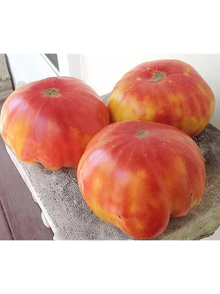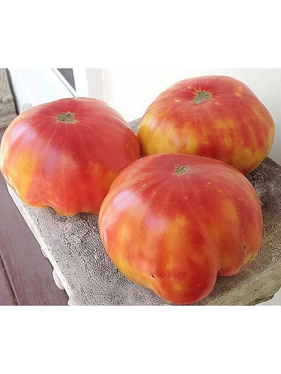 Крупные, плоскоокруглые плоды оранжевого цвета с розовыми прожилками выглядят эффектно в нарезке. Они идеально подходят для свежих салатов, где выполняют двойную роль: служат вкусовой основой благодаря сладости и создают яркий цветовой акцент. Из-за малого количества семян и плотной мякоти томаты не дают излишней водянистости в блюде.