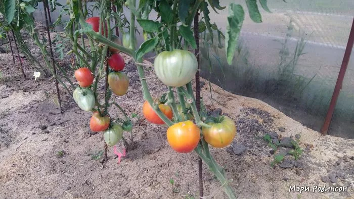 Высокорослость и крупноплодность делают Мэри Робинсон требовательной к питанию. Растению необходимы хорошо заправленная органикой почва и регулярные подкормки в период налива плодов, иначе оно не сможет выкормить все завязи до заявленного размера.