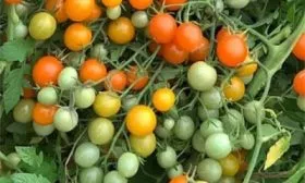Плоды этого сорта — его визитная карточка. Их масса около 10 граммов, что относит томаты к категории черри или коктейльных. Такие помидоры ценятся за высокое содержание сухих веществ, сахаров и витаминов по сравнению с более крупноплодными сортами.