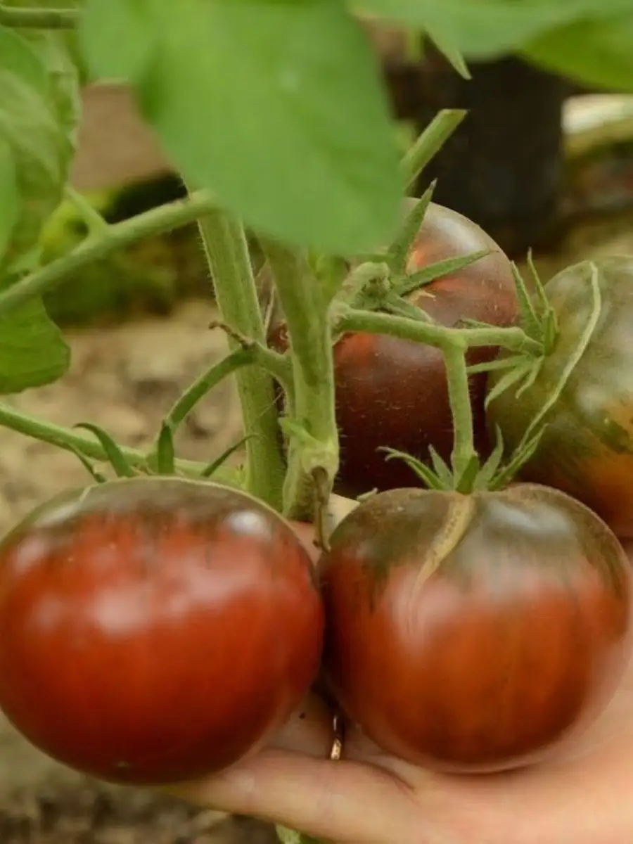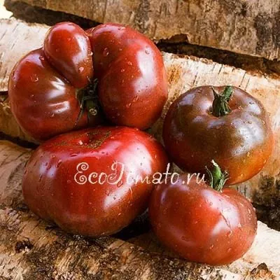 Внешний вид плодов – визитная карточка сорта. Их окраска уникальна и редко встречается среди томатов. В стадии полной зрелости основной цвет – насыщенный бордово-розовый или бордово-коричневый. Характерная особенность – темное, коричнево-зеленое пятно у плодоножки, которое может сохраняться даже у полностью спелых томатов. Это не признак незрелости, а сортовой окрас.