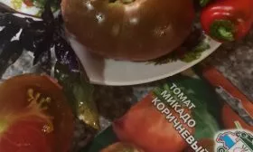 Главный визуальный признак — равномерная окраска кожицы в насыщенный коричневый (шоколадный) цвет без зеленого пятна у плодоножки. Полностью вызревший плод на ощупь мягкий, но сохраняет упругость, не продавливается под легким нажатием. Сбор рекомендуется проводить в утренние или вечерние часы в сухую погоду, аккуратно срезая томат секатором или откручивая с частью плодоножки.