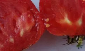 Для крупноплодных томатов массой 300-360 граммов, к которым относится Микадо розовый, вершинная гниль — частое физиологическое нарушение. Оно связано с дефицитом кальция в плодах, который возникает не из-за недостатка элемента в почве, а из-за проблем с его транспортировкой.