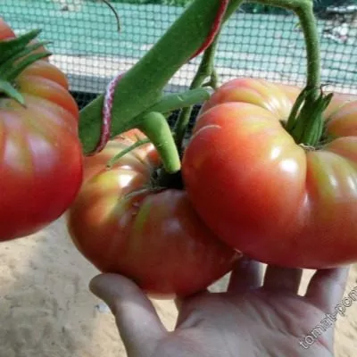 Сочетание внушительного размера, выраженной ребристости и нежной окраски делает плоды этого томата очень эффектными. Их внешний вид сразу указывает на салатное назначение и высокие вкусовые качества.