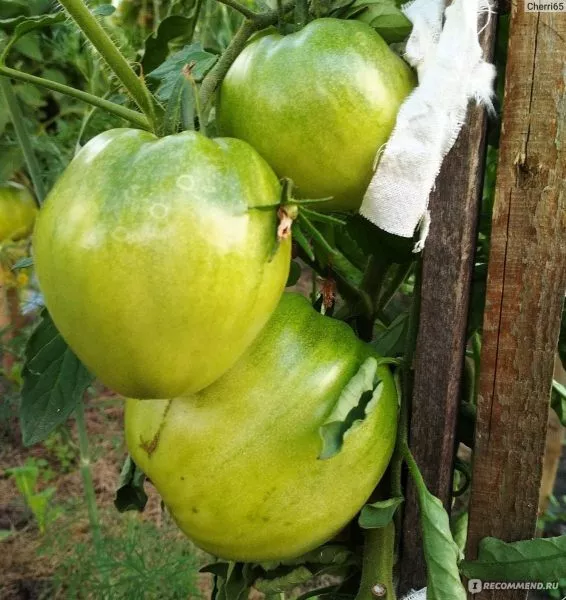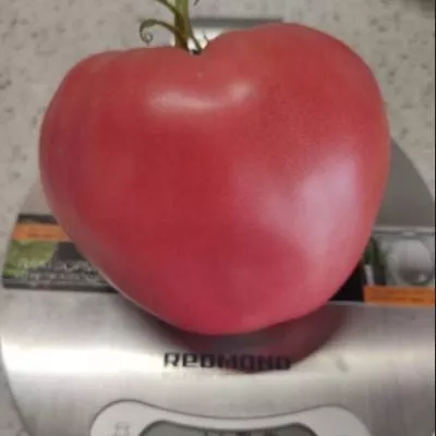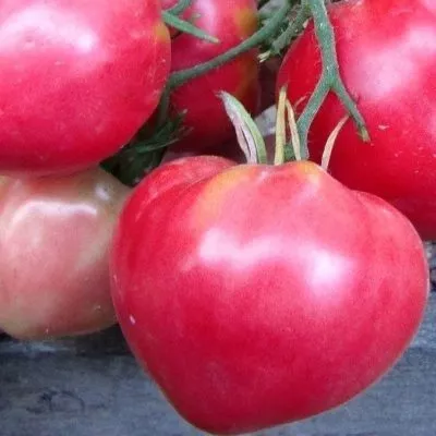 Плоды — ключевая отличительная черта сорта. Их сердцевидная форма с четко выраженным заостренным «носиком» очень узнаваема. В стадии технической спелости у плодоножки может сохраняться темно-зеленое пятно, которое исчезает при полном созревании, и томат равномерно окрашивается в насыщенный розовый цвет с малиновым оттенком.