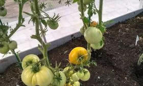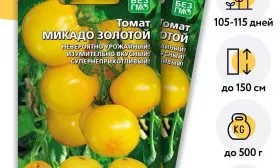 Главная особенность Микадо золотого — это сочетание раннего созревания с типичными для индетерминантных сортов крупноплодностью и высоким ростом. Обычно такие мощные томаты с гигантскими плодами относятся к среднеспелым или поздним. Здесь же мы имеем уникальный случай, когда можно получить очень крупные, массой до 500 граммов, желтые томаты в относительно ранние сроки.