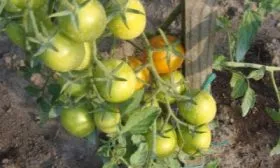 Томаты собраны в простые кисти, по 6-10 штук в каждой. Такое обильное плодоношение на одной кисти создает эффектную картину усыпанного яркими «шариками» куста. Плоды в кисти созревают достаточно дружно, что удобно для сбора.