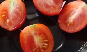 Кожица у плодов плотная, но не грубая. Это критически важное качество для консервации: помидорки не лопаются при термической обработке в кипящем маринаде. Мякоть сочная, мясистая, с двумя-тремя семенными камерами.
