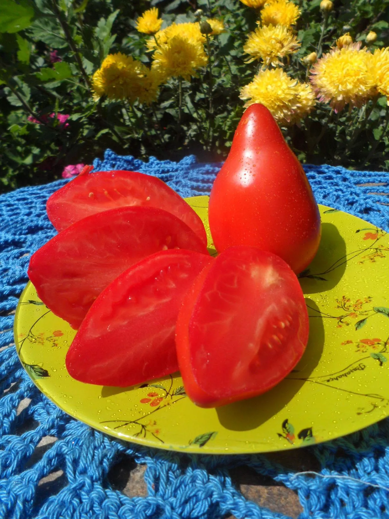Мякоть у таких плодов, как правило, плотная, мясистая, с небольшим количеством семян и высоким содержанием сухих веществ. Именно это свойство, наряду с гармоничным «томатным» вкусом без выраженной кислоты, определяет его высокую оценку для переработки на сок, пасту или кетчуп, где важны и насыщенный цвет, и густая консистенция, и сбалансированный вкус готового продукта.