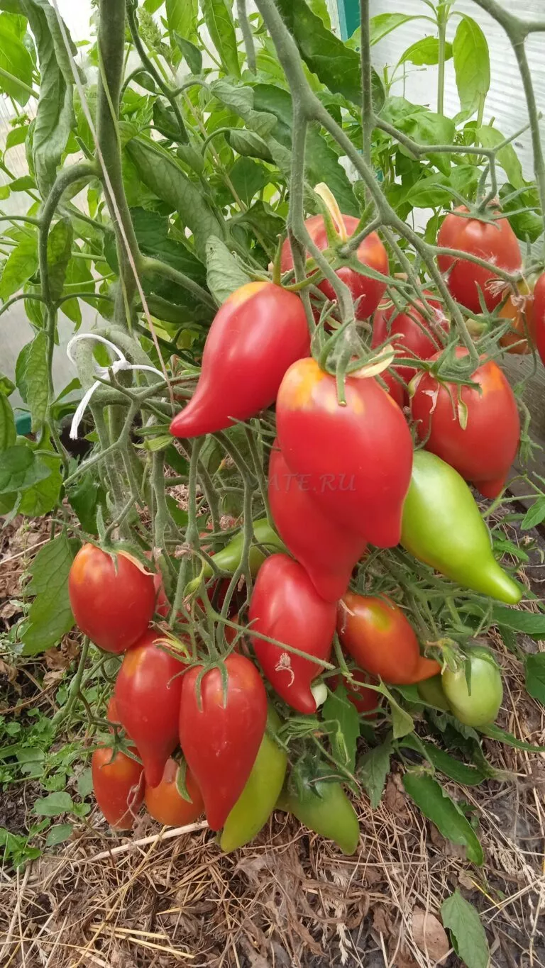 Плоды — ключевая отличительная черта сорта. Их вытянутая, овально-сливовидная форма с четко выраженным острым «носиком» на вершине является визитной карточкой. Такая форма не случайна и имеет практическое значение для огородника.