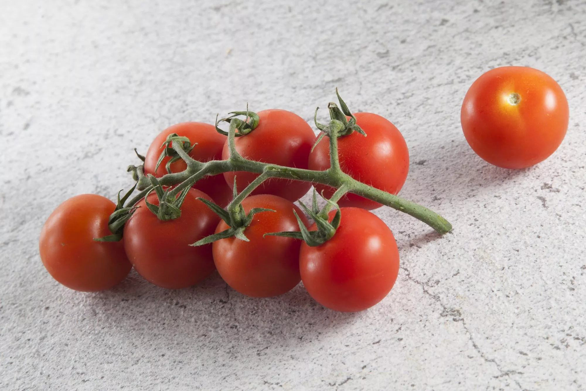 Отдельный томат некрупный, его масса варьируется от 25 до 42 граммов. Форма плодов классическая, идеально округлая и ровная. В стадии технической спелости они зеленые, а при полном созревании равномерно окрашиваются в насыщенный красный цвет без пятен у плодоножки.