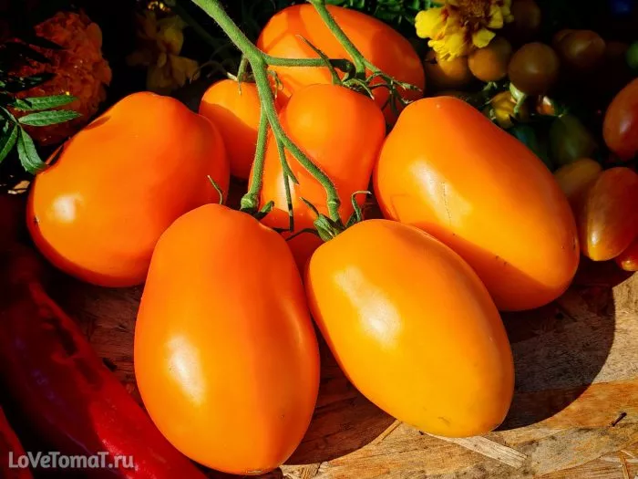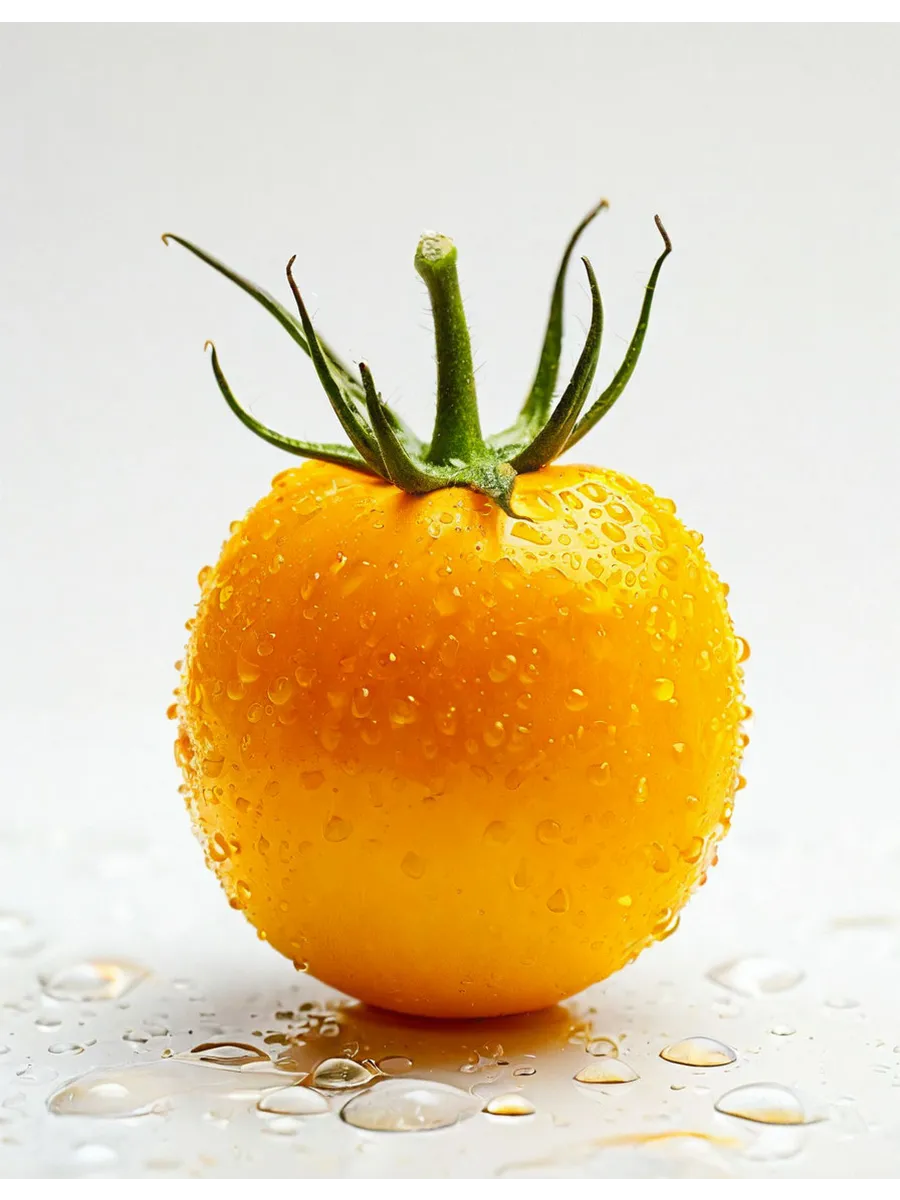 В фазе технической спелости томаты имеют равномерную светло-зеленую окраску без темного пятна у плодоножки. При полном созревании они наливаются ярким, солнечным желто-оранжевым цветом. Кожица у зрелых плодов плотная и гладкая, что является важным технологическим качеством для сортов, предназначенных для вяления и консервации, так как предотвращает растрескивание при тепловой обработке.