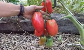 - Надежную подвязку к шпалере или высоким кольям организуют через 5-7 дней после высадки. Стебель у сорта мощный, но под весом многочисленных тяжелых кистей может надломиться. Используйте мягкие материалы, не травмирующие стебель.