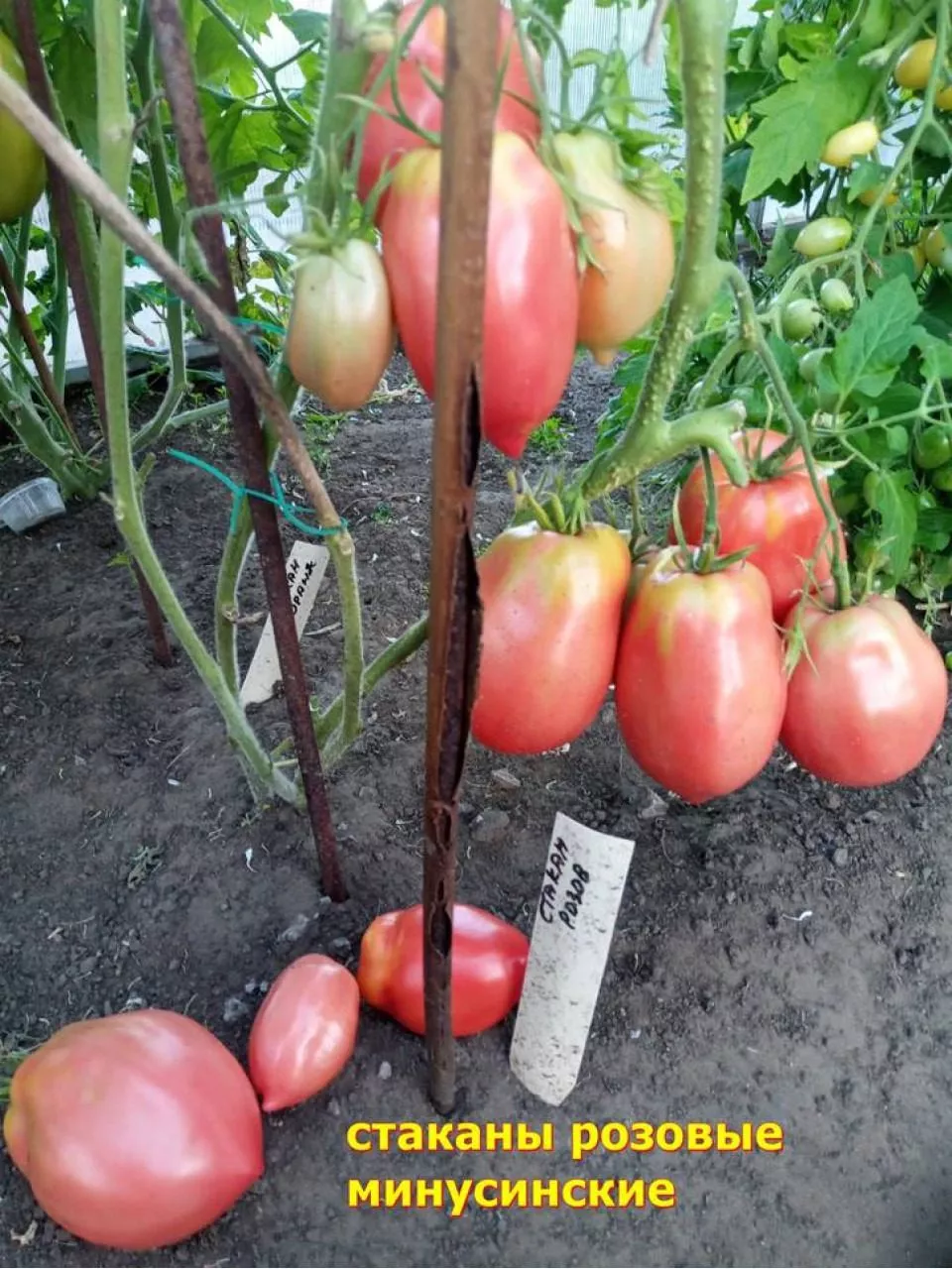 Название сорта точно описывает его суть: «Минусинские» указывает на географическое происхождение и адаптацию к местным условиям, а «стаканы» — это устойчивое народное обозначение для плодов удлиненной, сливовидной или перцевидной формы. Розовая окраска отличает его от других представителей обширной «семьи» минусинских томатов, куда входят аналогичные сорта с желтыми, красными и малиновыми плодами.