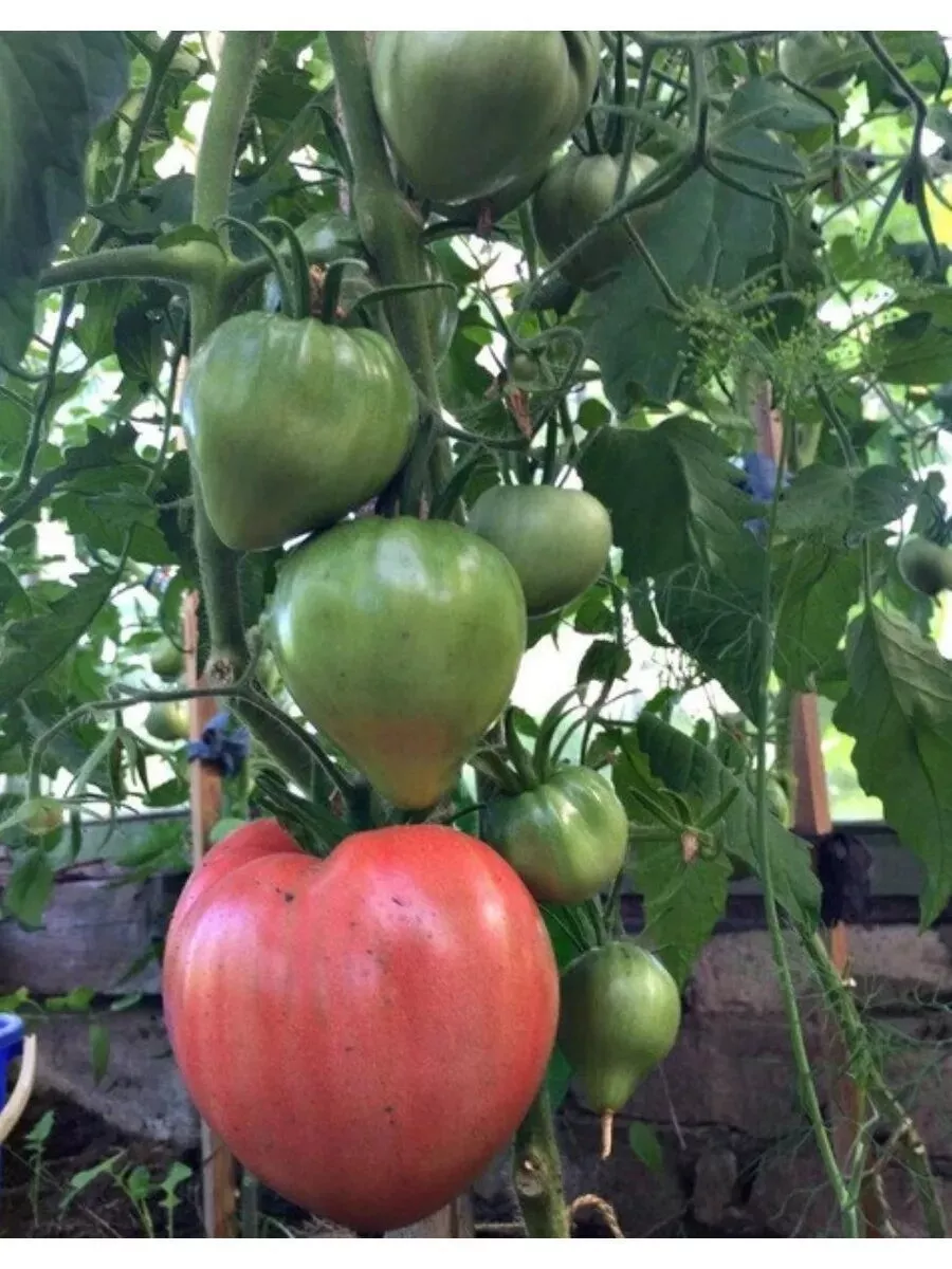Растение обладает классическим для индетерминантных сортов габитусом — это мощный, быстро развивающийся куст с неограниченной точкой роста. В условиях защищенного грунта его высота регулярно достигает верхней отметки, что требует планирования пространства теплицы заранее. Стебель крепкий, но его прочности недостаточно, чтобы удерживать массивные кисти с плодами, поэтому система опор и подвязки является не рекомендацией, а строгой необходимостью.