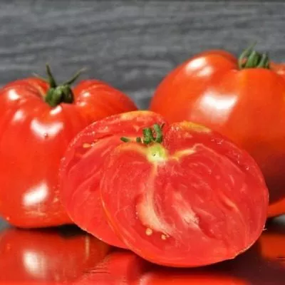Мякоть очень мясистая, сахаристая на изломе, с небольшим количеством семян и семенных камер. Именно такое строение — мало семян, много плотной, однородной мякоти — напрямую определяет его кулинарное назначение. Оно делает сорт идеальным для переработки на густой сок, кетчуп и пасту, которые получаются концентрированными, с высоким выходом готового продукта.