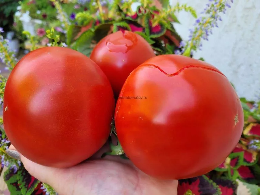 | Высокая потенциальная урожайность (4-5 кг с куста) | Требует усиленного питания и стабильного полива, особенно в периоды цветения и налива плодов. Крупноплодность сорта делает его чувствительным к пересыханию почвы, которое может вызвать растрескивание томатов. | Нерегулярный полив, когда периоды засухи чередуются с обильным увлажнением. |