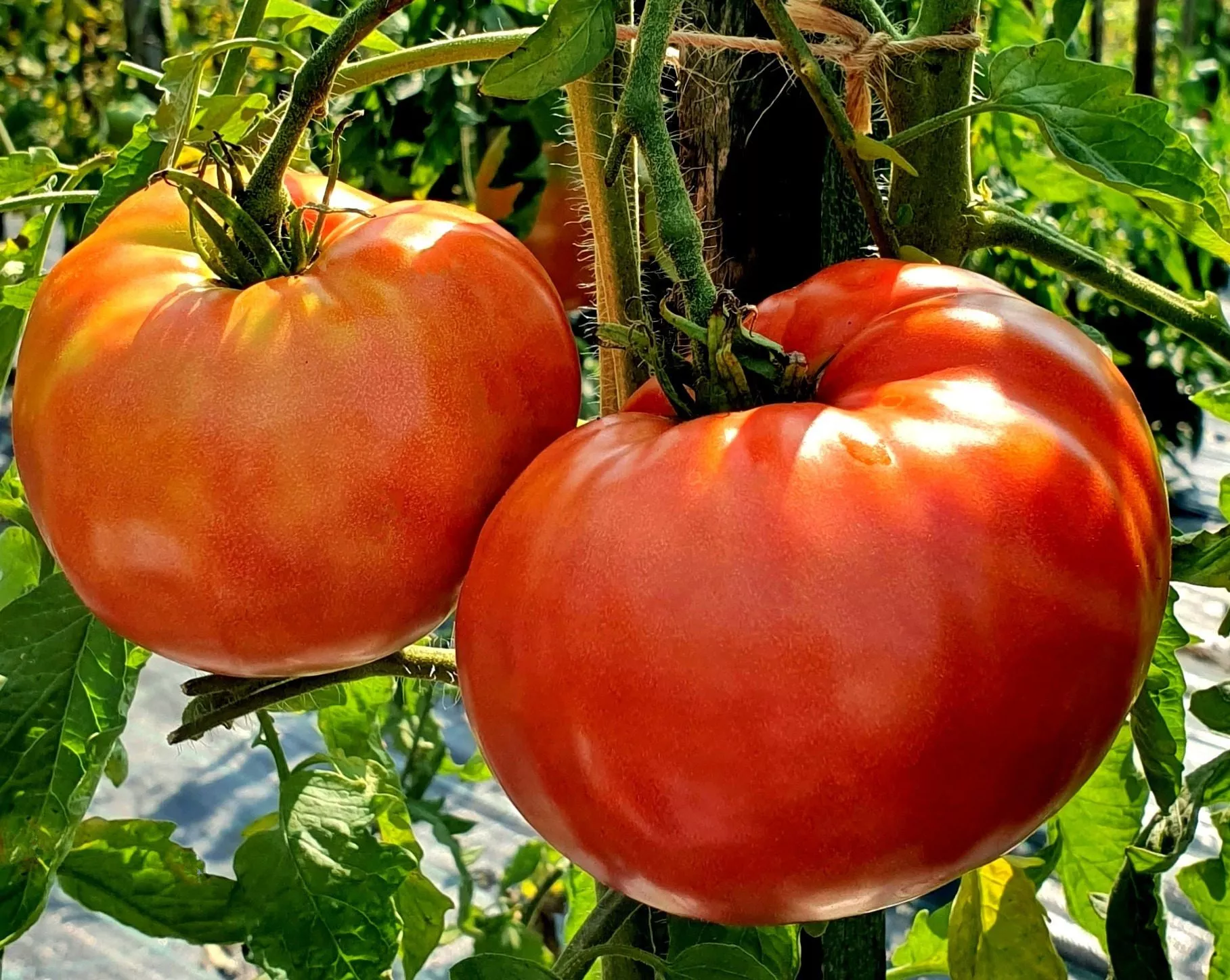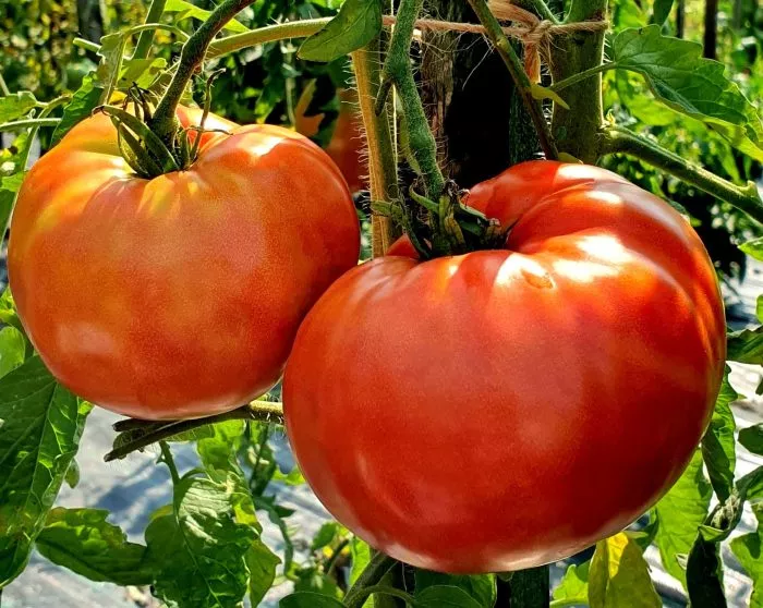 Плоды имеют классическую для крупных «биф-томатов» плоскоокруглую форму, нередко с выраженной ребристостью в области плодоножки. Ребристость не является браком, а скорее свидетельствует о сортовой принадлежности и мясистости.