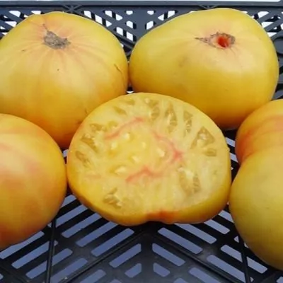 Плоды отличаются солидной массой, в среднем от 200 до 450 граммов. На нижних кистях не редкость экземпляры весом 500-600 граммов и более. Мякоть очень плотная, мясистая (так называемого биф-типа), малосемянная, с несколькими отчетливыми семенными камерами.