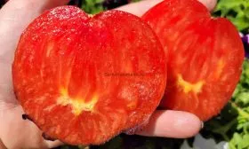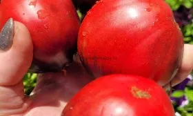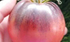 Форма плода широко-сердцевидная, часто с четко выраженным носиком на вершине, что придает им узнаваемый вид. Масса варьируется в широком диапазоне от 120 до 250 граммов, причем первые, самые нижние плоды, как правило, наиболее крупные. Мякоть обладает насыщенным сладким вкусом с фруктовыми нотками, что характерно для многих розовоплодных томатов.