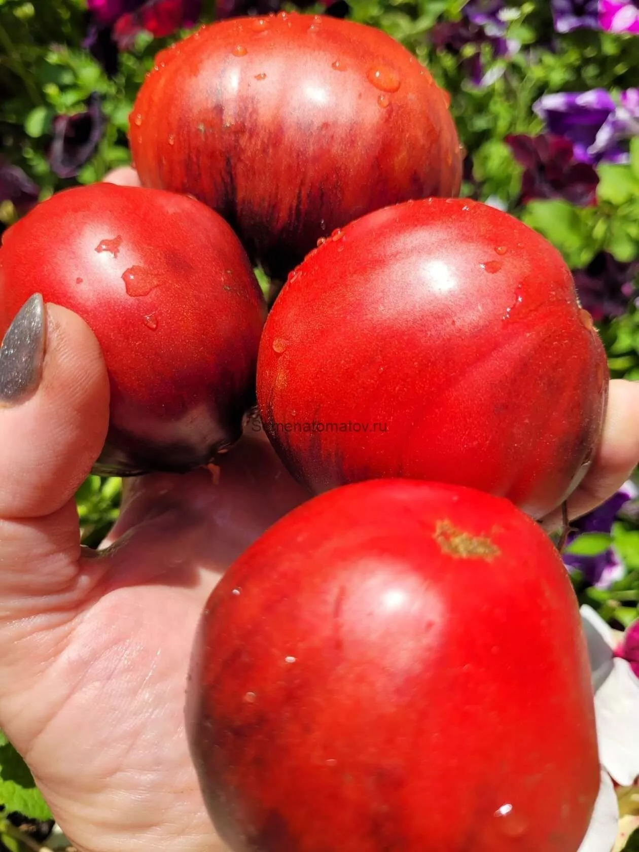 Для максимального раскрытия вкуса и аромата томаты рекомендуется снимать в стадии полной биологической спелости, когда они равномерно окрашиваются в характерный красно-розовый цвет с синими плечиками. Однако из-за высокого роста растения и крупных кистей часть плодов, особенно в верхних ярусах, может не успеть вызреть на кусту до конца сезона.